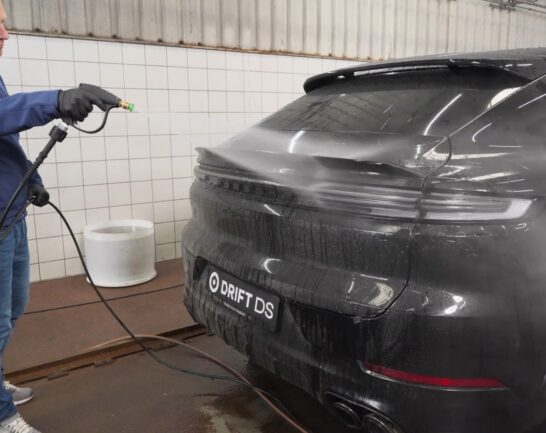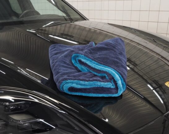 Spoel de auto volledig af met schoon water zodat alle shampoo en vuilresten verdwijnen. Gebruik bij voorkeur een wat zachtere waterstraal zodat water makkelijker van de lak afloopt. Droog de auto vervolgens met een grote, schone droogdoek. Werk zonder druk en trek of dep het water voorzichtig van het oppervlak. Goed drogen voorkomt watervlekken en kalkresten en bereidt de lak voor op bescherming.