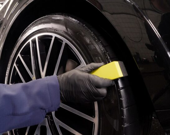 Werk de wasbeurt af door banden en eventuele overige rubberdelen te behandelen met een bandendressing of rubber conditioner. Dit herstelt de diepe kleur en beschermt tegen uitdroging, verkleuring en scheurtjes. Breng het product aan met een applicatorpad en verdeel gelijkmatig over de bandwang. Goed verzorgde banden en rubbers geven de auto een nette, professionele en afgewerkte uitstraling.