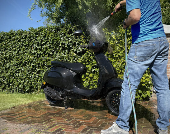 Droog je scooter af met een schone, zachte Droogdoek of gebruik een blower als je die hebt. Hiermee voorkom je watervlekken en blijft de lak in topconditie.