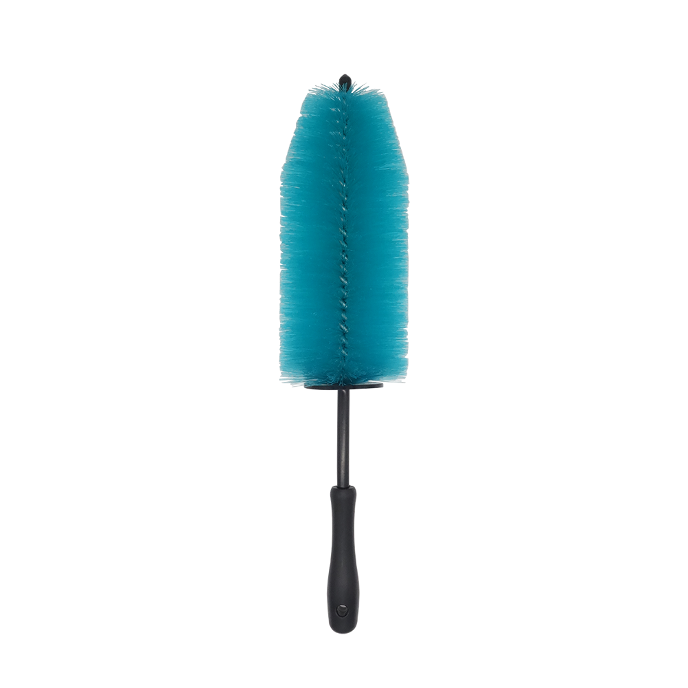 Borstel met stevige, veilige haren en ergonomische grip die moeiteloos remstof, vuil en aanslag verwijdert voor perfect schone velgen tot in de lastigste hoekjes.